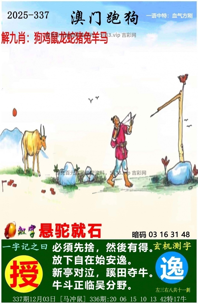 | 337期 | 猪羊马兔 | 开:鸡09 |